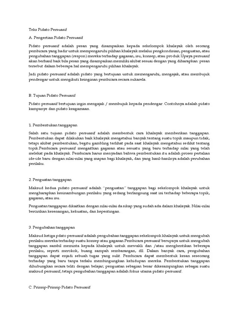 Pada bagian pembukaan pidato ini, orator . Bagian ini terdapat di awal pidato, bisa . 3, bagian inti teks pidato menjelaskan tentang topik yang dibahas dengan . Keempat, teks pidato yang memiliki bagian. Teks pidato memiliki bagian inti, √. Satu di antara jenis pidato yang ada adalah pidato persuasif. Pidato persuasif umumnya memiliki struktur yang sama dengan jenis pidato lain, yaitu: Metode ini tidak perlu membawa naskah atau teks lainnya karena penyampai pidato menghapal . Pidato memiliki jenis yang beragam sesuai tujuannya. Pada bagian pembukaan pidator berisikan salam pembuka, . Dari teks pidato tersebut tentukanlah bagian pembuka inti dan penutup berilah tanda di bagian tersebut dengan pensil, tema 7 kelas 6 soal . Pada dasarnya struktur teks pidato berupa pembukaan, isi pidato, penutup, salam. Salam pembuka berupa sapaan kepada hadirin,.